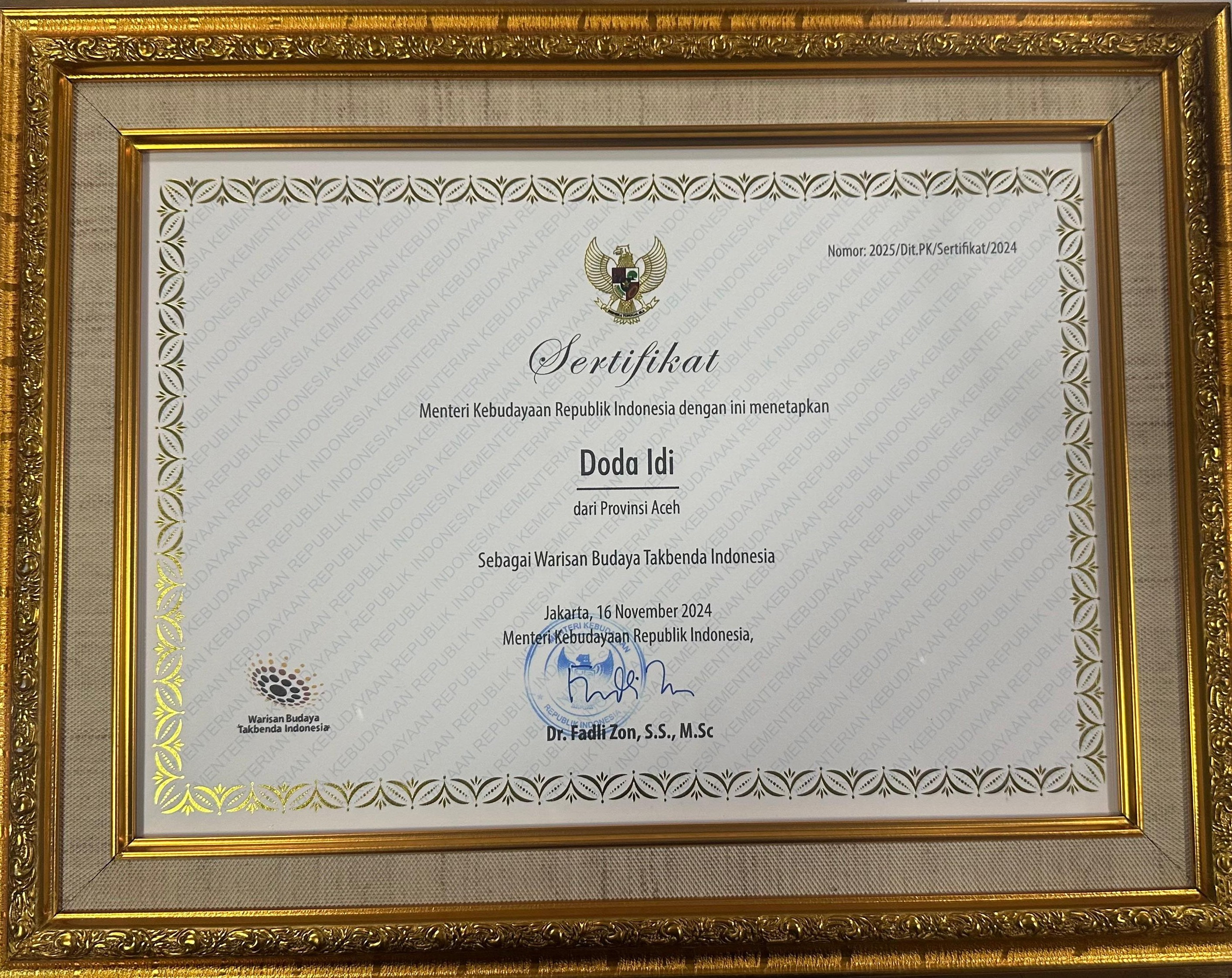 nomor sertifikat: 2025/Dit.PK/sertifikat/2024 Dodaidi adalah bentuk tradisi lisan dalam masyarakat Aceh berupa nyanyian pengantar tidur (lullaby) yang biasa dilantunkan oleh seorang ibu kepada bayinya saat dalam buaian atau ayunan. Tradisi ini tidak hanya berfungsi sebagai hiburan dan alat penenang, tetapi juga sebagai media penanaman nilai-nilai moral, spiritual, dan kebangsaan kepada anak sejak usia dini. Dalam praktiknya, bayi dalam budaya Aceh biasanya tidur di dalam ayunan yang diletakkan sekamar dengan orang tuanya. Di saat-saat menjelang tidur, ibu akan menyanyikan syair-syair Islami, berisi pesan akhlak, sejarah, dan ajaran Nabi. Menurut para ahli medis dan psikolog, masa transisi menuju alam bawah sadar merupakan waktu yang sangat efektif untuk menanamkan pesan-pesan moral dan spiritual. Nilai Keislaman dan Kebangsaan dalam Dodaidi Syair Dodaidi secara konsisten menggunakan kata "Allah" di awal bait sebagai bentuk penguatan iman kepada anak. Dalam setiap baitnya, terkandung harapan agar anak kelak menjadi pribadi yang berakhlak, beriman, serta memiliki kesadaran bela agama dan bela bangsa. Sebagian besar syair juga mengandung pesan perjuangan dan patriotisme, seperti ajakan untuk ikut berperang membela tanah air, suatu bentuk pendidikan karakter yang kuat dalam menghadapi penjajahan. Dalam Islam, memperkenalkan agama kepada anak merupakan tanggung jawab orang tua, dan Dodaidi menjadi salah satu medianya. Makna dan Struktur Syair Kata "Dodaidi" berasal dari dua kata bahasa Aceh: Doda (atau peudoda): berarti bergoyang Idi: berarti berayun Syair Dodaidi tergolong sebagai puisi tradisional Aceh yang anonim (tanpa diketahui pengarangnya). Biasanya disusun dalam empat baris tiap bait dengan pola sajak a-a-a-a atau a-b-a-b. Syair ini diwariskan secara turun-temurun dan hingga kini masih digunakan dalam sejumlah komunitas Aceh. Dodaidi mencerminkan kearifan lokal (local wisdom) yang memuat pesan moral, ajaran Islam, dan nilai-nilai kebangsaan. Masyarakat meyakini bahwa lirik-lirik ini mempengaruhi pembentukan karakter anak sejak dini. Contoh Syair dan Penjelasan Makna Bait 1: Allahai do dodaidi, Boh gadong bie boh kayee uteu Rayek sinyak hana peue ma bri Aeb ngon keuji ureung donya khe Makna: Kata "Allah" sebagai pembuka merupakan penguatan nilai tauhid. Syair ini mengandung harapan ibu agar anaknya tumbuh besar meski orang tua tidak dapat memberi banyak harta. Anak diajarkan untuk kuat menghadapi aib dan fitnah, serta memiliki mental tangguh dalam menjalani kehidupan. Bait 2: Allahai do dodaidang, Seulayang blang ka putoh taloe Beurijang rayek muda seudang Ta jak bantu prang ta bila nanggroe Makna: Ajakan kepada anak untuk cepat dewasa dan membantu perjuangan membela tanah air. Ini adalah bentuk pendidikan patriotisme dan cinta tanah air, sejak anak berada dalam buaian. Bait 3: Wahee aneuk bek taduek le Beudoh sare ta bila bangsa Bek ta takot keu darah ile Adak pih mate poma ka rela Makna: Pesan keberanian dan kesiapsiagaan. Anak diharapkan tidak takut menumpahkan darah demi bangsa. Bahkan jika harus gugur, orang tua rela demi perjuangan membela tanah air dan agama. Dodaidi dan Perlawanan terhadap Penjajah Dalam konteks sejarah Aceh, syair Dodaidi memiliki peran penting dalam membangkitkan semangat perjuangan melawan penjajah, sejajar dengan karya-karya seperti Hikayat Prang Sabi oleh Tengku Chik Pante Kulu, yang menyulut semangat generasi muda Aceh dalam melawan Belanda (1873–1942) dan Jepang (1942–1945). Bait “ta jak bantu prang ta bila nanggroe” menunjukkan bahwa syair ini bukan sekadar hiburan, tetapi juga instrumen pendidikan perjuangan yang ditanamkan sejak dini. Aceh pun dikenal sebagai daerah yang tidak pernah secara resmi menyerah kepada penjajah. Penting dicatat bahwa semangat perjuangan dalam syair Dodaidi tidak dibatasi gender. Sejarah mencatat banyak pahlawan perempuan dari Aceh, seperti Tjoet Nja Dhien dan Tjoet Meutia, yang turut aktif dalam peperangan.
