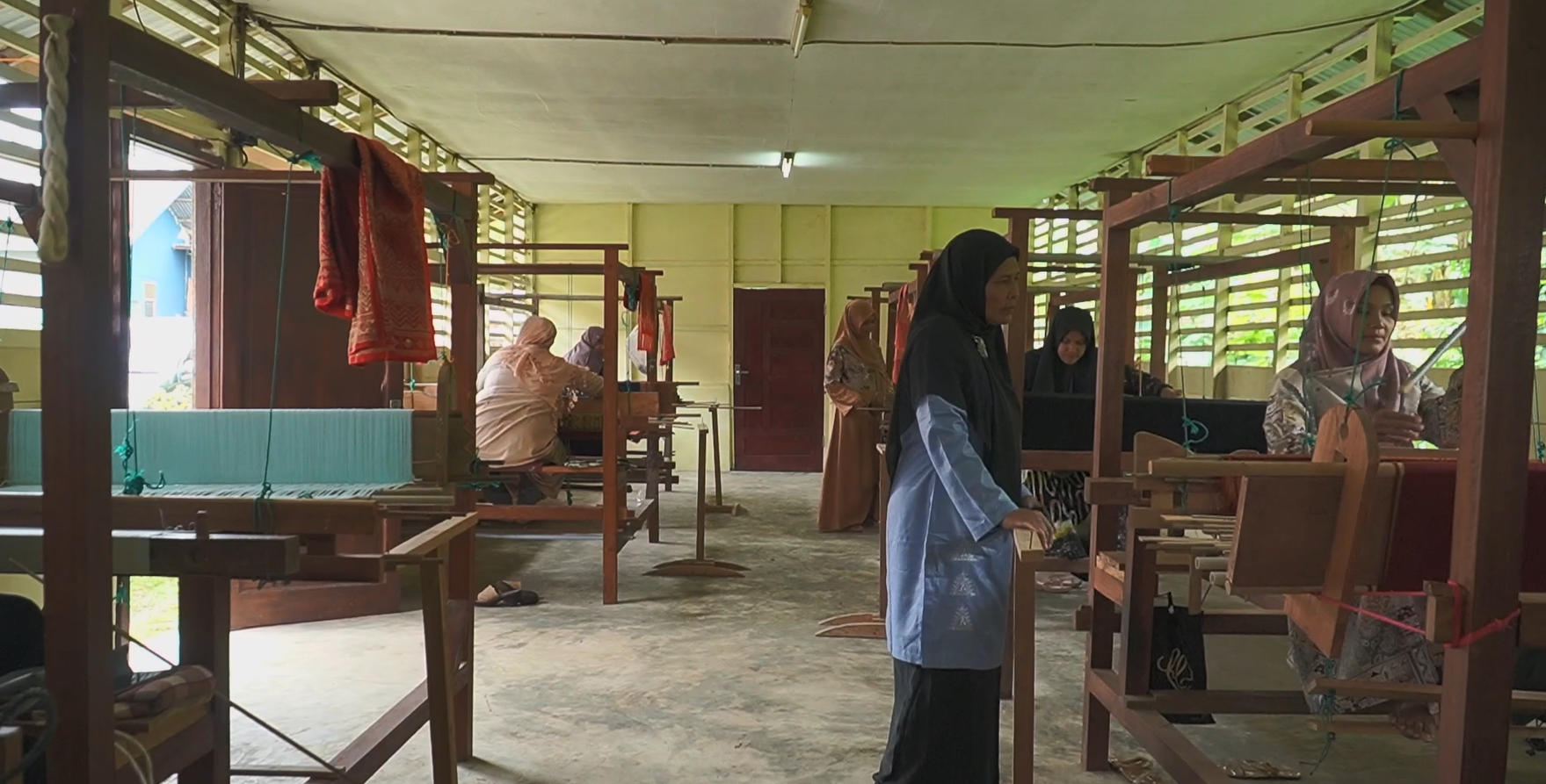 Pök Teupeuen merupakan pekerjaan ketrampilan menenun benang menjadi kain.. Kata Pök Teupeuen mengandung makna mengantuk papan alat pemintal, bertenun, pök ija, menenun, memintal kain, (Aboe Bakar,dkk, 2008, hal. 734). Pök Teupeuen disebut juga Tak teupeuen, berarti kegiatan menenun. Seiring dengan perguliran waktu, memiliki ketrampilan termasuk ketrampilan menenun menjadi tuntutan penting bagi rakyat Aceh dalam menjalani kehidupannya. Dalam pandangan masyarakat Aceh gadis-gadis yang tidak mahir menenun sangat dicela dan dianggap sebagai perempuan yang tidak cakap dalam kehidupan. Hal ini tercermin dalam Hadih Maja (Peribahasa Aceh), tayue peu-ék ie beukah tayeuen, tayue pök teupeun keundô asöe, yang maksudnya: disuruh mengangkat air pecah tempayan, disuruh menenun kendur kainnya. Informasi penting dan tertua yang mengabarkan tentang keberadaan tenunan sutera di Aceh terdapat dalam kitab dari Dinasti Sung (960 -1279) pada penggalan abad ke X dan XI. Kitab Sung mencatat perihal keberadaan dan produksi kain sutera di Aceh terutama di kawasan Pidie dan Aceh Besar, hingga pada penggalan abad ke-19 keberadaan tenun sutera Aceh menyebar ke berbagai wilayah di Aceh. Sutera Aceh dengan bahan sutera yang bermutu tinggi dan dipadu dengan keragaman motif yang indah, merupakan sebuah maha karya, sehingga dihargai dengan nilai lebih mahal dibanding dengan kain sutera serupa yang diimpor dari India. Terkait bagaimana produksi sutera di Aceh pada penggalan abad XIV, diceritakan oleh Denys Lombard, seorang sejarawan Perancis dalam bukunya, Kerajaan Aceh Zaman Iskandar Muda (1607-1636), “sutera tetap dihasilkan dengan hasil yang lumayan banyak di daerah sekitar Aceh. Para petani menghasilkan sutera dalam jumlah yang cukup besar, yang diolah di Aceh menjadi berbagai barang yang sangat digemari di seluruh pulau Sumatra”. Memproduksi kain tenun telah menjadi kebijakan Sulthan Aceh Darussalam. Berdasarkan sebuah manuskrip Pohon Aceh Darussalam yang berisi 21 Kewajiban Rakyat Aceh Darussalam yang disusun pada masa Paduka Seri Sultan Alauddin Johan Ali Ibrahim Mughayat Syah Johan Berdaulat (1514 -1530), Sultan Aceh Darussalam memerintahkan kepada Rakyat Aceh untuk memproduksi kain tenun sutra, khususnya kepada kaum perempuan. Pada pasal ke-5 yang berbunyi, “diwajibkan di atas sekalian rakyat Aceh yang perempuan yaitu mengajar dan belajar membikin teupeun (tenun), bikin kain sutera dan kain benang dan menjahit dan menyulam dan melukis bunga-bunga pada kain pakaian dan barang sebagainya.” Tenun sutera Aceh mengalami masa kemunduran, kemudian hilang sama sekali pada era perang Aceh, yakni perang antara Kesultanan Aceh Darussalam melawan Belanda. Perang Aceh dianggap sebagai perang terberat dan terlama dalam sejarah penjajahan Belanda. Denys Lombard menyebutkan bahwa pada zaman Snouck Hourgronje dapat dikatakan tenun sutera Aceh telah hilang. Tenun sutera Aceh perlahan mulai bangkit kembali pada tahun 1973, melalui karya perempuan gampong Siem, Hajjah Maryamu Ali, atau yang lebih dikenal dengan Nyakmu. Berbekal ketrampilan yang diwariskan dari orangtuanya dengan pendampingan oleh Dinas Perindustrian Aceh saat itu, Nyakmu mulai memperkenalkan kembali tenun sutera Aceh kepada dunia. Dengan tekun Nyakmu kembali mempertajam skill menenun dan kemudian mengajarkan ilmunya kepada perempuan-perempuan termasuk generasi muda yang ada gampong Siem kecamatan Darussalam-Aceh Besar. Lebih jauh, tanpa kenal lelah, Nyakmu terus mengembangkan ilmu menenun songket Aceh ini ke beberapa gampong di wilayah Aceh Besar seperti Miruek Taman, dan juga beberapa wilayah Aceh lainnya yakni, Lamgugob Banda Aceh, Lamno Aceh Jaya, dan Aceh Timur. Hari ini, dapat dipastikan semua penenun yang memiliki ketrampilan menenun di Aceh sanad keilmuannya tersambung kepada Nyakmu. Paska bangkit kembali pada era tahun 70-an, tenun songket Aceh terus berkembang seiring perjalanan waktu. Tenun songket Aceh sempat mengalami masa kejayaan pada saat Prof. Dr. Ibrahim Hasan menjabat gubernur Aceh pada tahun 1986-1993. Saat ini sebaran sentra produksi tenun songket Aceh berada di gampong Siem, gampong Miruek Taman dan Krueng Kalee. Ketiga lokasi produksi tenun songket Aceh ini berada di Kecamatan Darussalam, Aceh Besar. Teupeun adalah alat tenun tradisioanal yang terdiri dari rangkaian seperangkat alat yang memiliki fungsi masing-masing dalam tradisi menenun masyarakat Aceh . Bagian-bagian dari seperangkat alat tenun tradisonal Aceh adalah sebagai berikut: - Pha Cakah, adalah tiang teupeun yang biasanya terbuat dari batang bambu, yang berguna sebagai tempat menjepit gulungan benang tenun (Lhoh); - Lhôh (batang kumpar) adalah kayu balok tipis sepanjang bidang kain yang berfungsi sebagai tempat melilit masing-masing benang lungsi, agar dapat dikaitkan atau dijepit pada pha cakah; - Aneuk Idông adalah sepasang kayu kecil bulat sepanjang bidang kain yang digunakan untuk mengikat benang lungsi yang diikat atau dijepit pada batang kumpar (lhôh); - Peusha adalah balok gelondongan yang berfungsi sebagai tempat menggulung kain hasil tenunan. - Aneuk Klip sepotong kayu kecil dan ringan seukuran jari kelingking yang panjangnya seukuran lebar kain tenun yang berguna untuk mengikat atau menjepit benang lungsi pada balok peusha; - Peunök adalah sebilah kayu memanjang dengan salah satu sisnya dibuat lonjong/tumpul dan ujungnya lancip yang berguna untuk memukul benang/kasap supaya kain tenunnya memadat. Peunök juga berfungsi untuk membuat celah antara benang lungsi supaya dapat memasukkan benang atau menyelipkan benang emas (kasap. Peunök terdiri dari dua jenis yakni Peunök Rayek dan Peunök Ubiet; - Surie adalah irisan bambu yang disusun memanjang seperti sisir yang berfungsi untuk menyerak benang. - Garap adalah irisan benang nilon yang disusun memanjang yang berfungsi untuk menyerak benang lungsi sebelum dimasukkan ke dalam surir; - Tureuk adalah potongan ujung buluh bambu sepanjang lebih kurang 30 cm yang bagian ujungya dibuat melonjong dan berlubang p